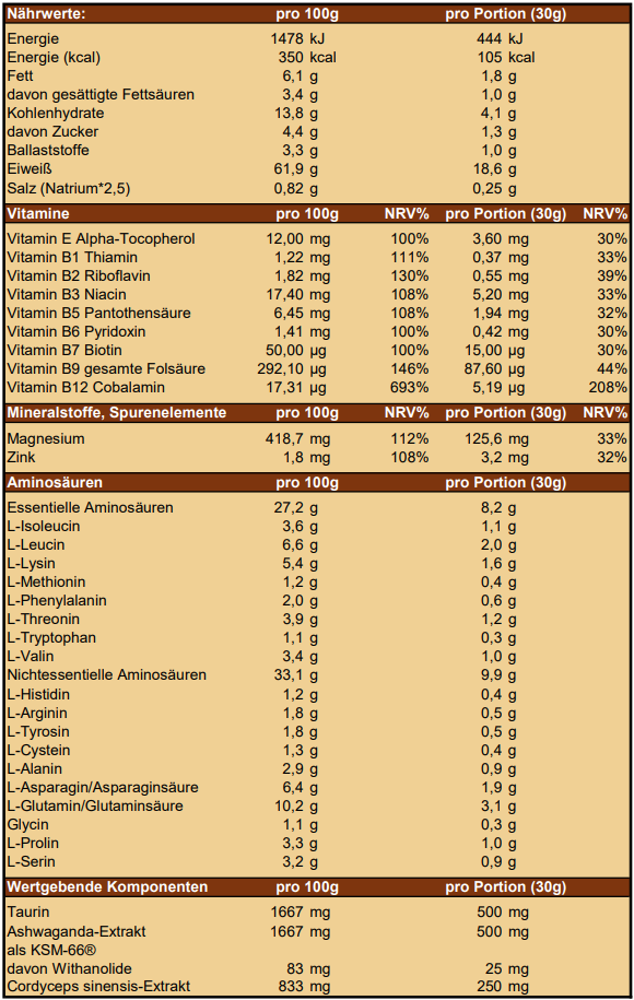 Dosierung: 30 g Pulver in 300 ml kaltes oder warmes (max. 60 °C) Wasser einrühren.